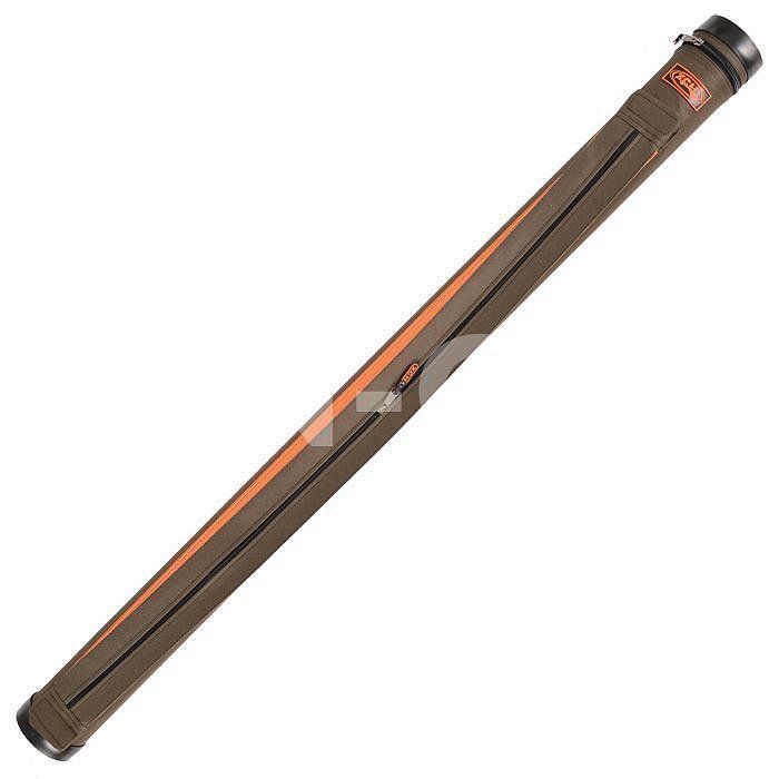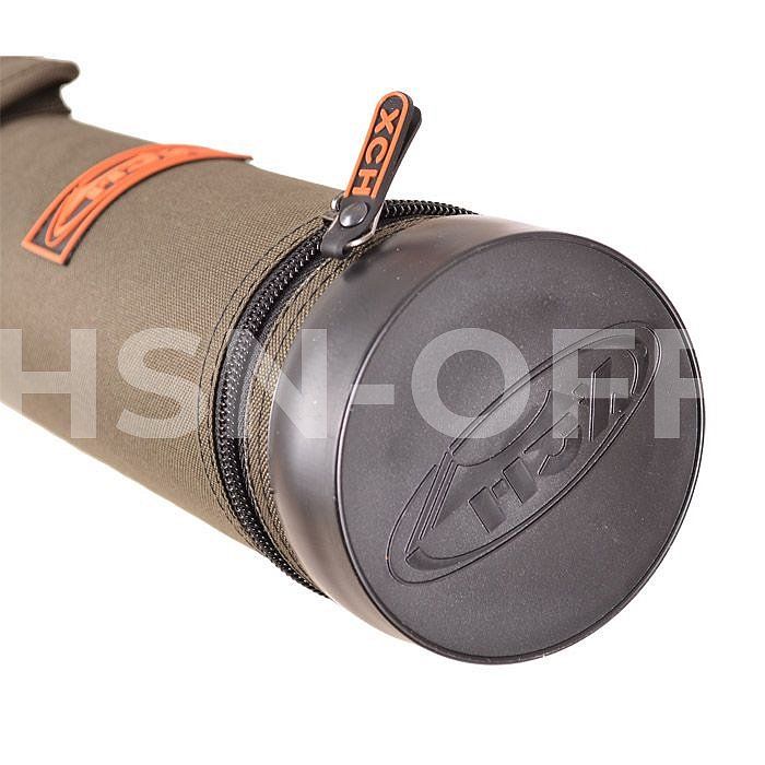 Сделан из пластмассовой трубы, обтянутой тканью Oxford(водостойкая). Внутри и по бокам обклеена ППУ 2 мм. Оба конца закрыты специальными заглушками. В производстве применяют итальянскую фурнитуру, почти не звенящую и не бликующую, а раскрой изделия выполняется на специальном для этого оборудовании, что обеспечивает отличное качество. Для более удобного переноса в конструкции тубуса предусмотрен ремень на плечо и ручка. Есть один большой карман. В тубусе помещается от двух до пяти спиннингов.